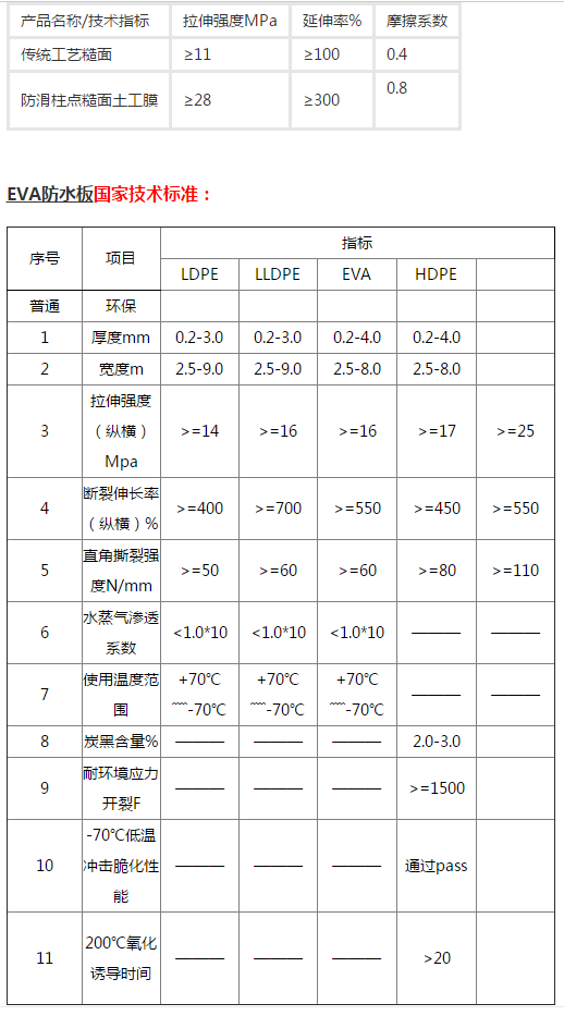 糙面防水板具有优异的温度适应性,可焊接性,耐候性和良好的抗老化性、耐化学腐蚀性、耐环境应力开裂性能及抗戳穿性能。产品分为单糙面和双糙面。